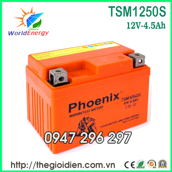 BÌNH ẮC QUY XE MÁY PHOENIX 12V-4.5Ah (TSM1250S)