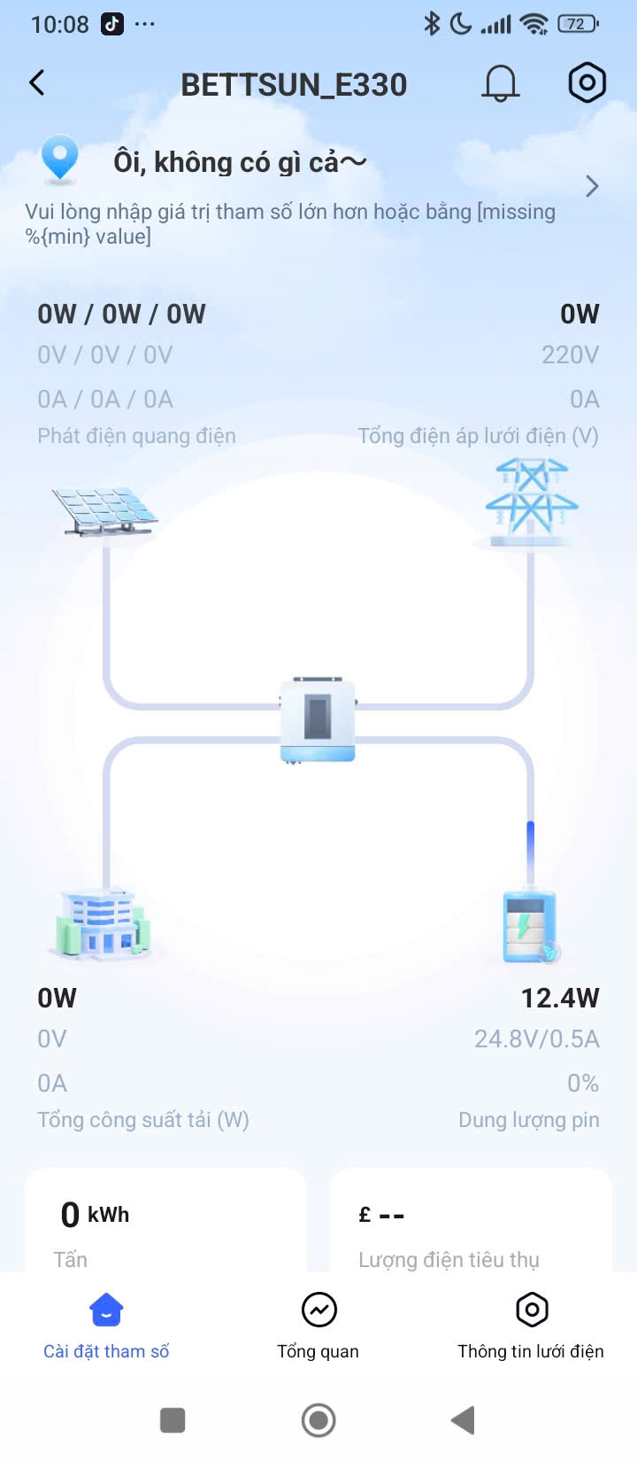 Sau khi nhập thông tin WiFi, ứng dụng sẽ bắt đầu cấu hình mạng cho inverter. Quá trình này chỉ mất vài phút. Khi hoàn tất, thiết bị inverter sẽ hiển thị trong danh sách thiết bị trên ứng dụng.