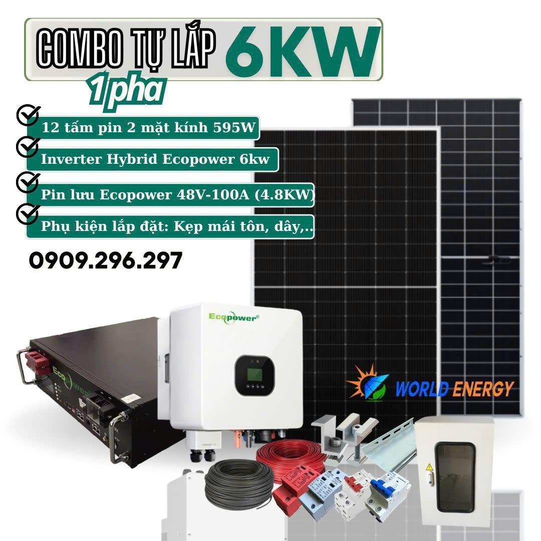 - Bộ biến tần lưu trữ (Hybrid) Ecopower 12KW: 1 bộ
