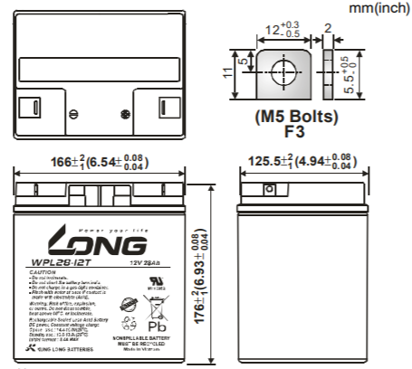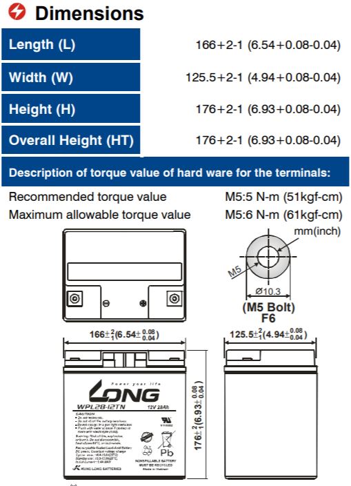Thông số kỹ thuật Bình ắc quy kín khí Long 12V-28Ah