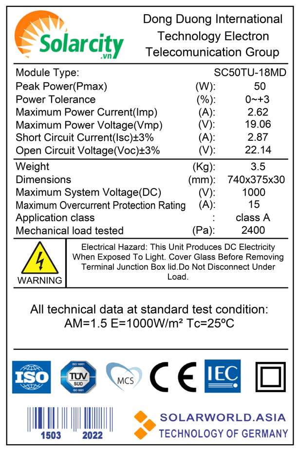 * Thông số kỹ thuật PIN NĂNG LƯỢNG MẶT TRỜI MONO 50W